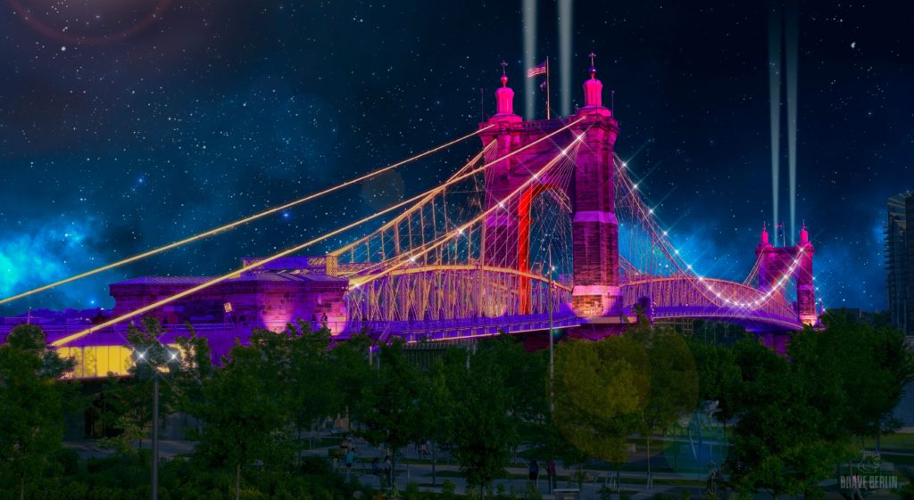 BLINK is back and brighter than ever, lighting up Greater Cincinnati once again and this year, Northern Kentucky is getting in on the action, thanks to Brave Berlin, MASARY Studios, Vincent Lighting, and the Roebling Bridge.