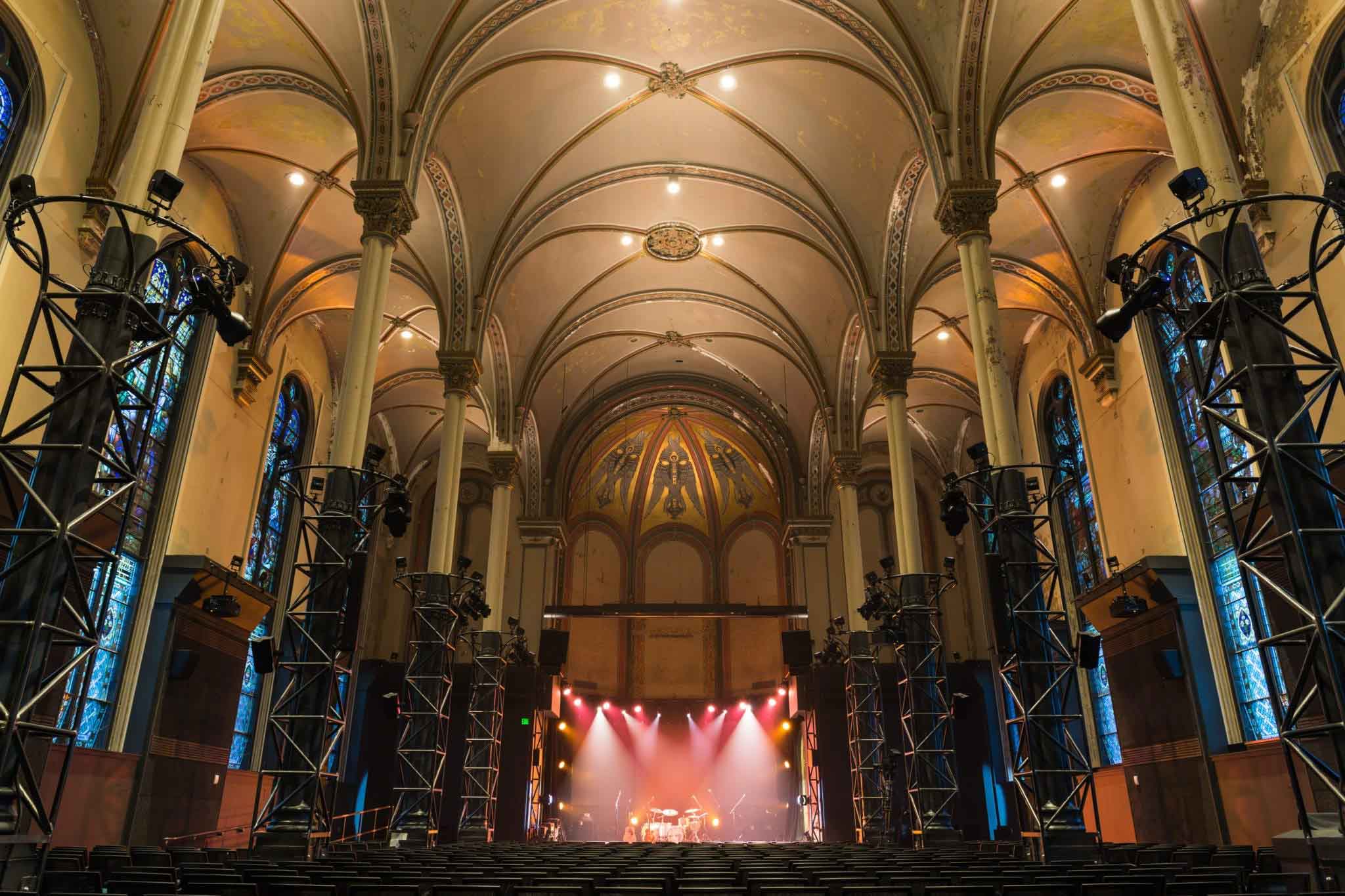 Originally constructed in 1873 as Old Saint George Church, the building fell into disrepair after its closure in 1993, and in 2008, an electrical fire destroyed its striking twin steeples. The church had been scheduled for demolition multiple times before Crossroads acquired it, undertook extensive renovations, and breathed life back into a breathtaking piece of Cincinnati architecture. When they wanted lighting to accentuate the new renovations, they got in contact with VLS.